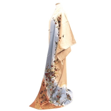 Kimono Beige Blueish Gray Chrysanthemum Plum blossom Silk #10522B2