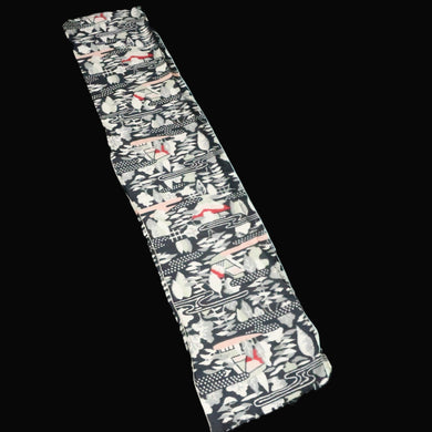 KK1479A2 Silk Kimono Fabric Vintage(1950-1980) Meisen Black 61.0x12.2in(155x31cm)