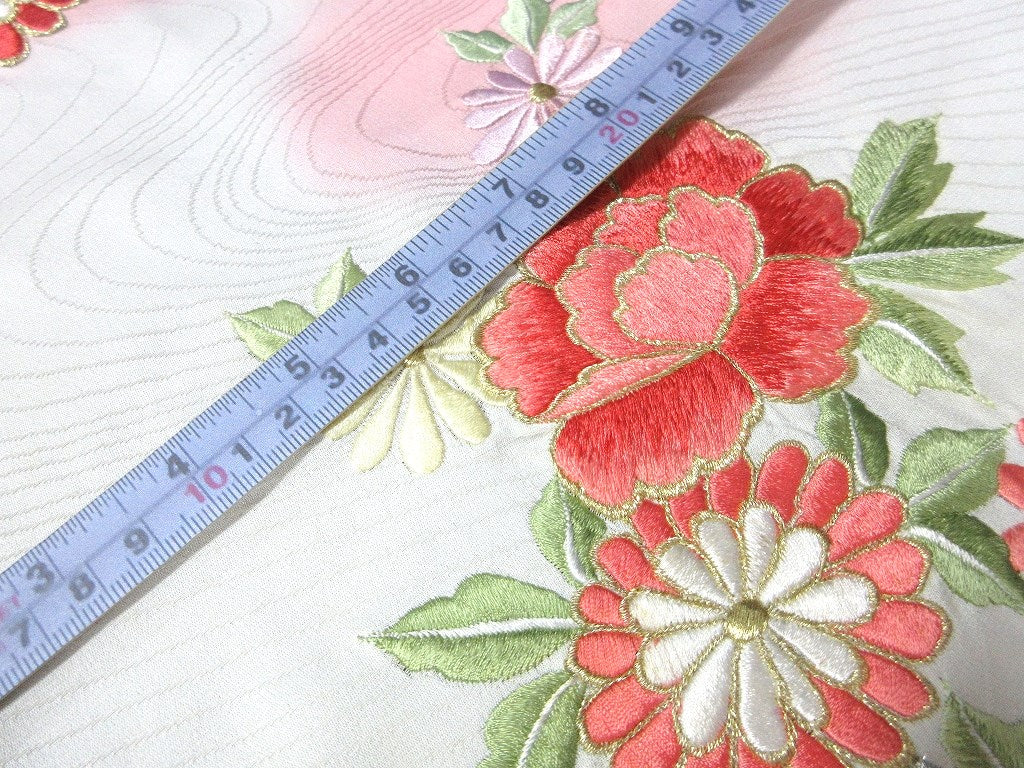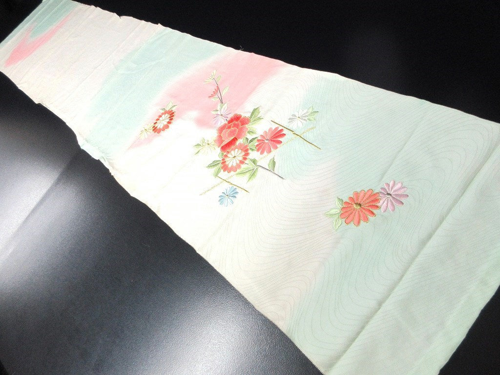 ACH#804 Silk Kimono Fabric Vintage Furisode Embroidery 70.9x13.4in(180x34cm)