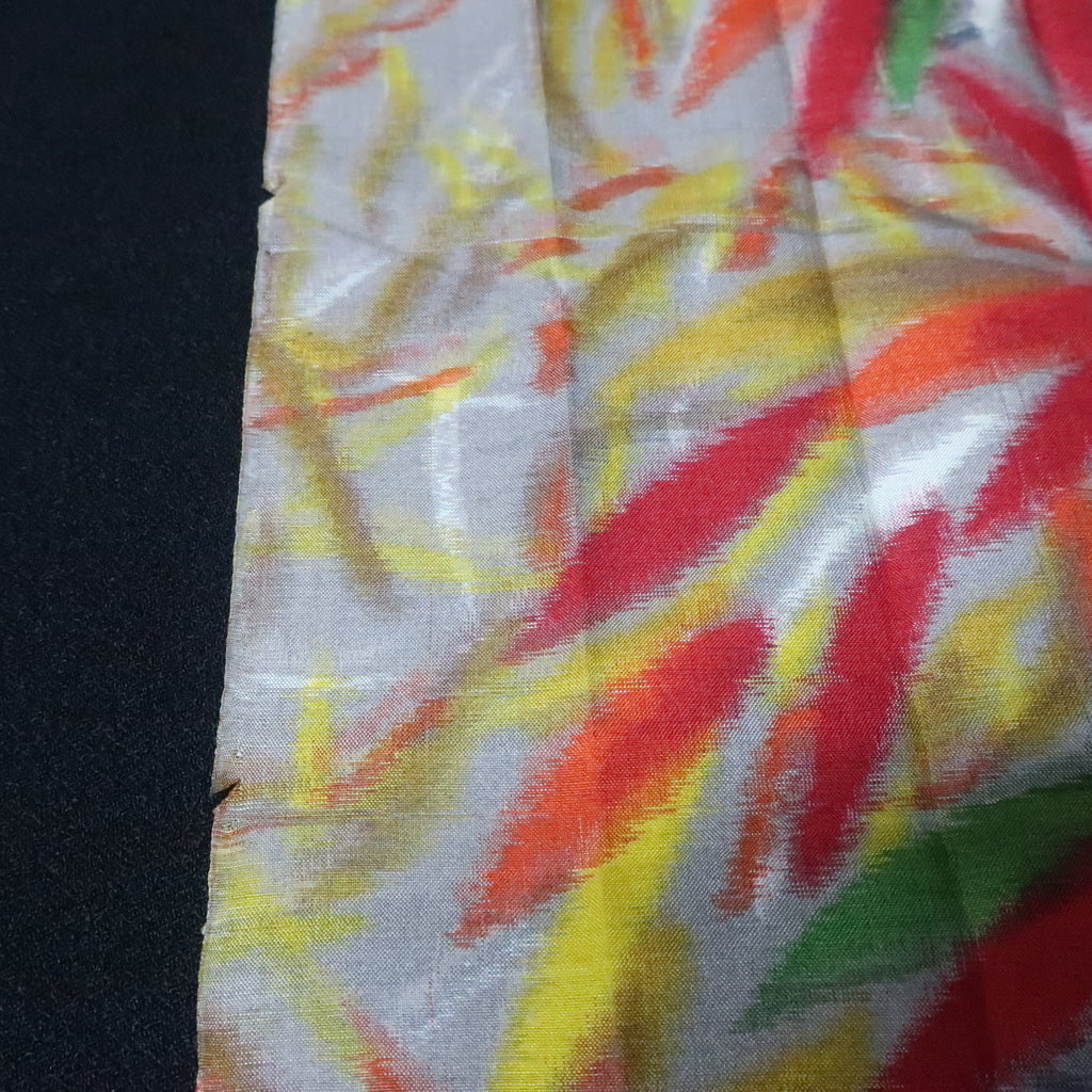 This is a piece of fabric that has been cut from an used kimono. (Single fabric. Not any pieces are sewn together to make the patterns.)