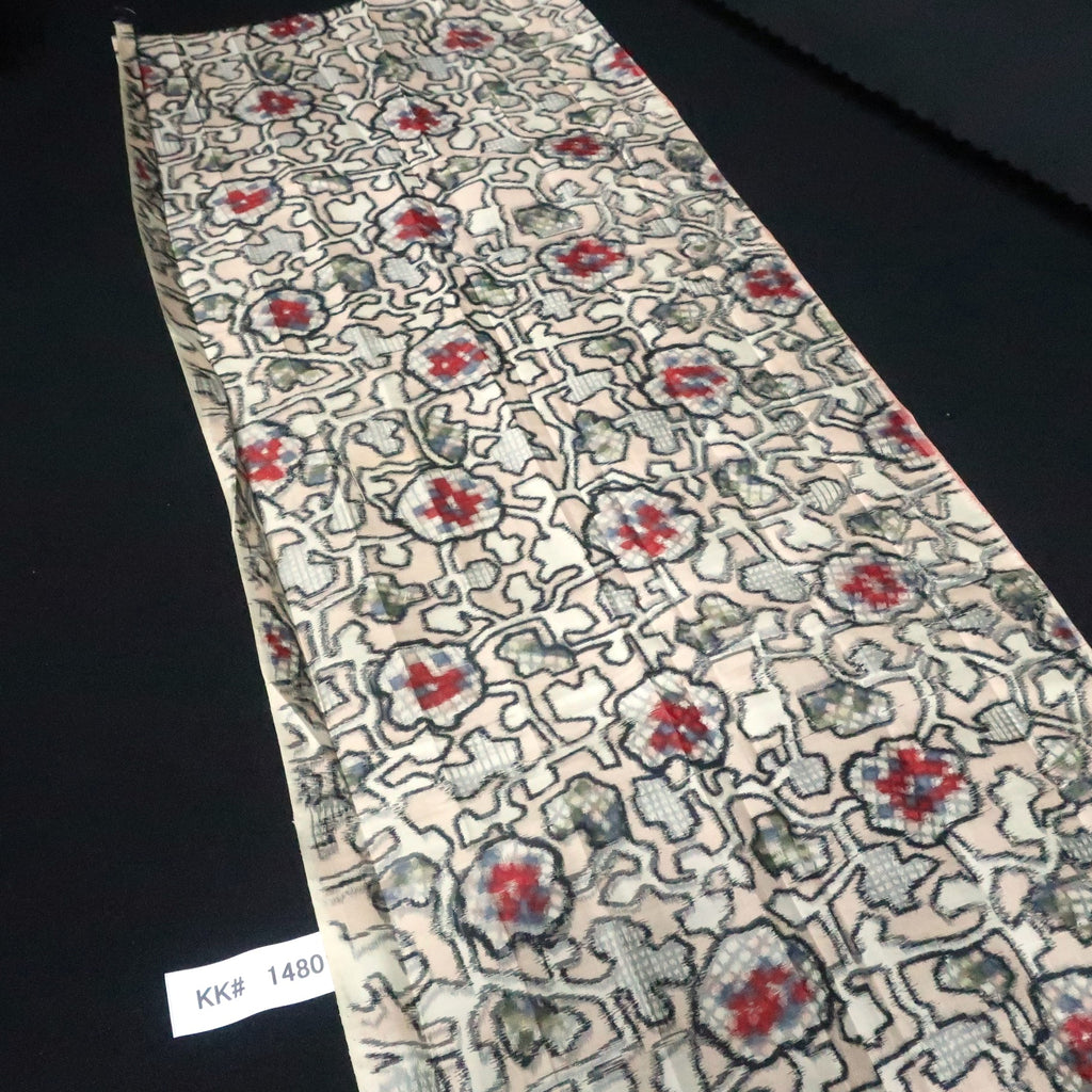 This is a piece of fabric that has been cut from an used kimono. (Single fabric. Not any pieces are sewn together to make the patterns.)