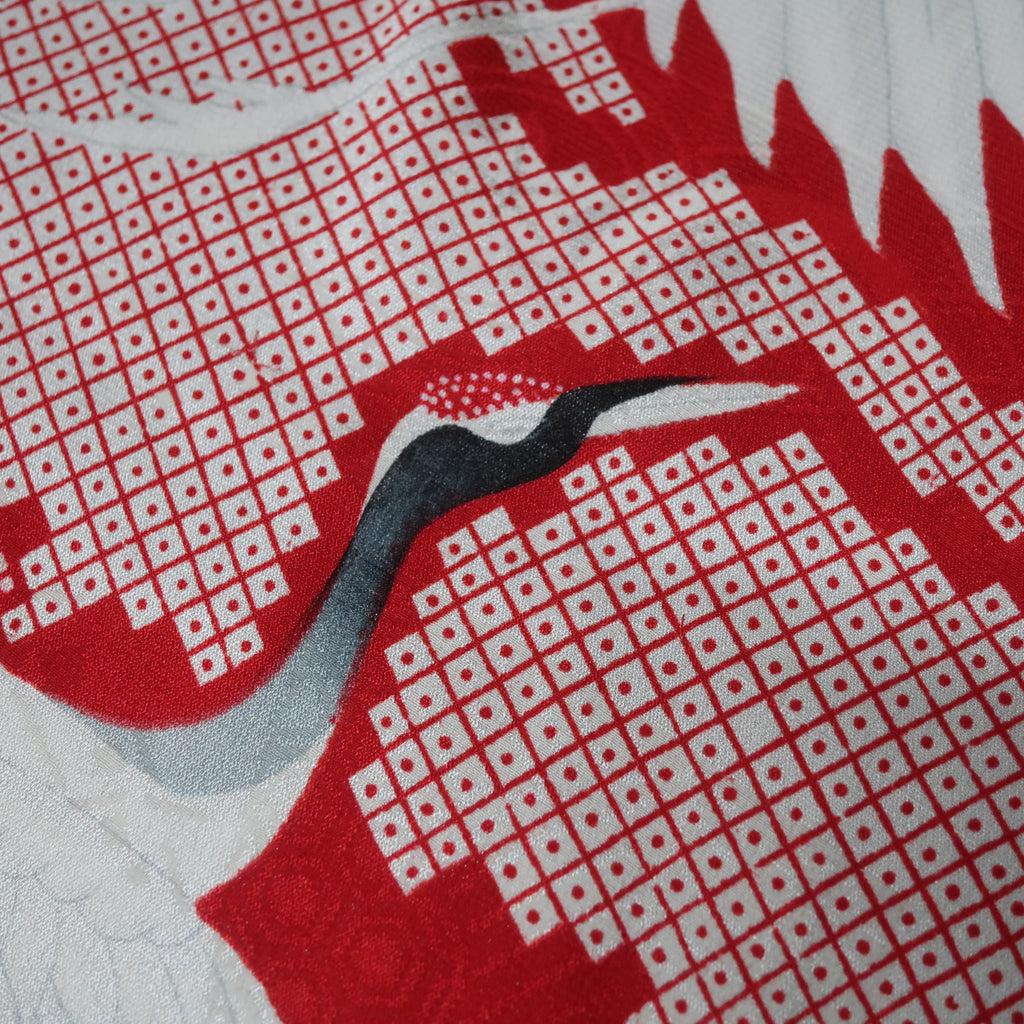 KK1489A2 Silk Kimono Fabric Vintage(1950-1980) Crane Birds Red 56.3x11.4in(143x29cm)