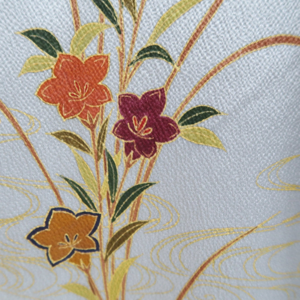 The fabric is a mid-weight Silk, smooth-textured a chirimen fabric with a gloss finish.
