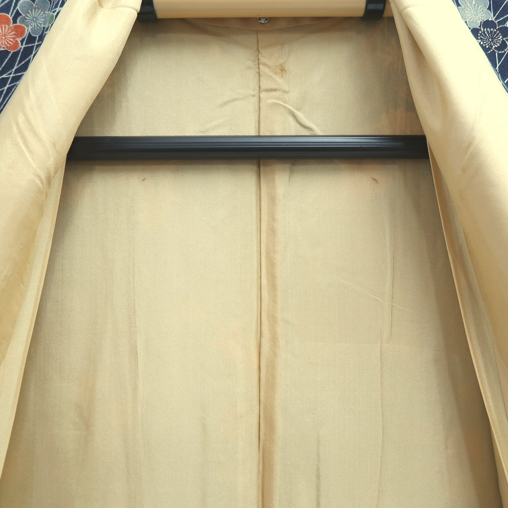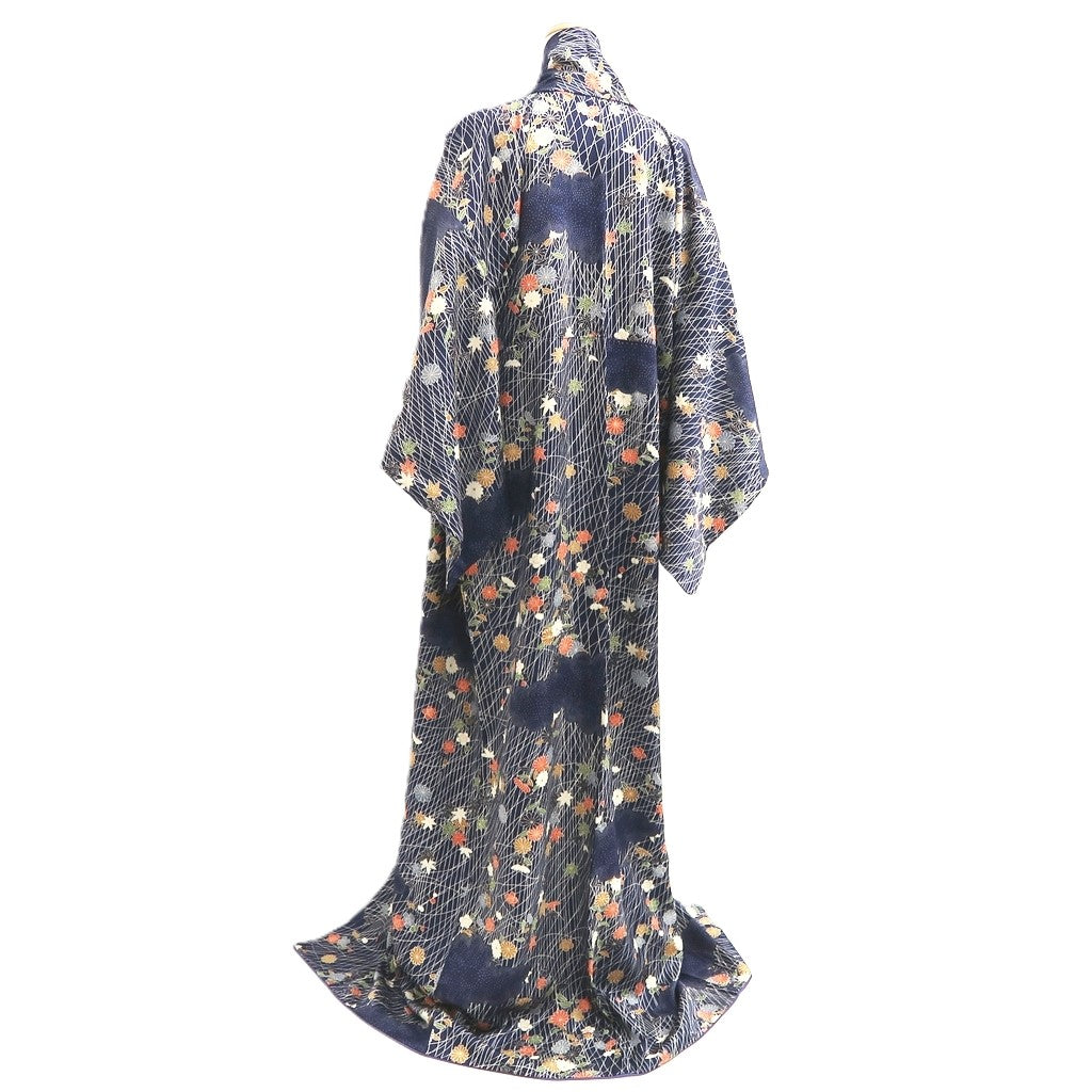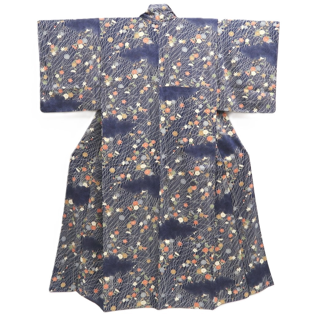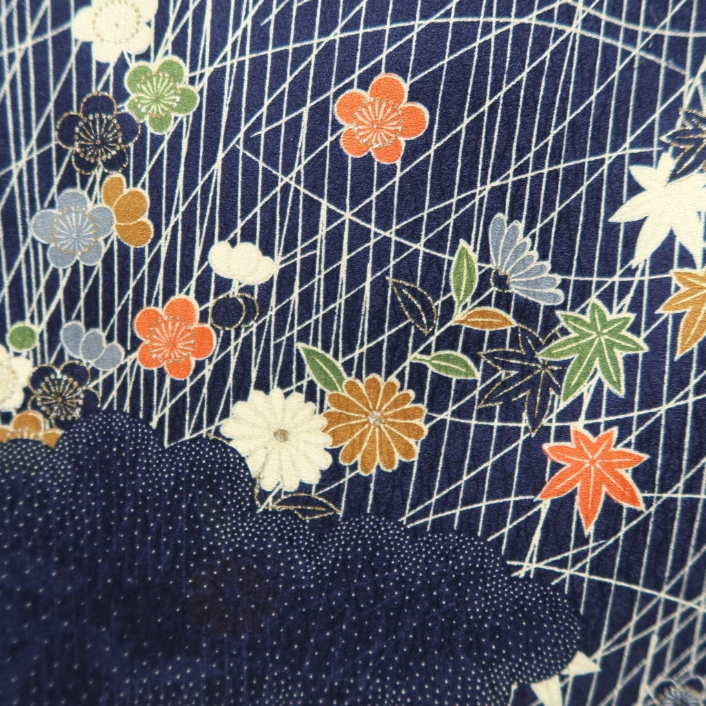 Kimono Dark Blue Chrysanthemum Maple Leaf Silk #10525B2