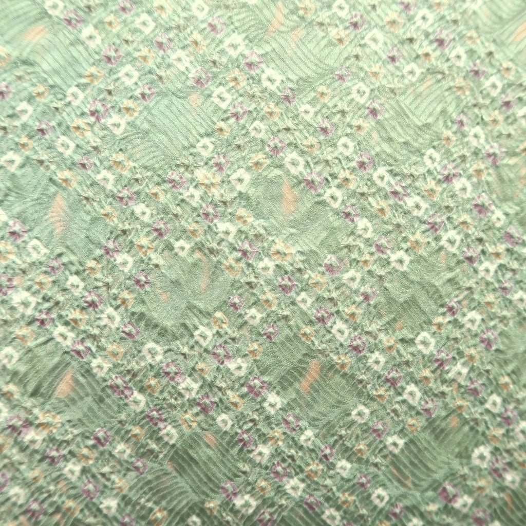 The fabric is a mid-weight Silk, smooth-textured with a slightly puffy and lustrous finish typical of hand tied tie-dye (shibori).