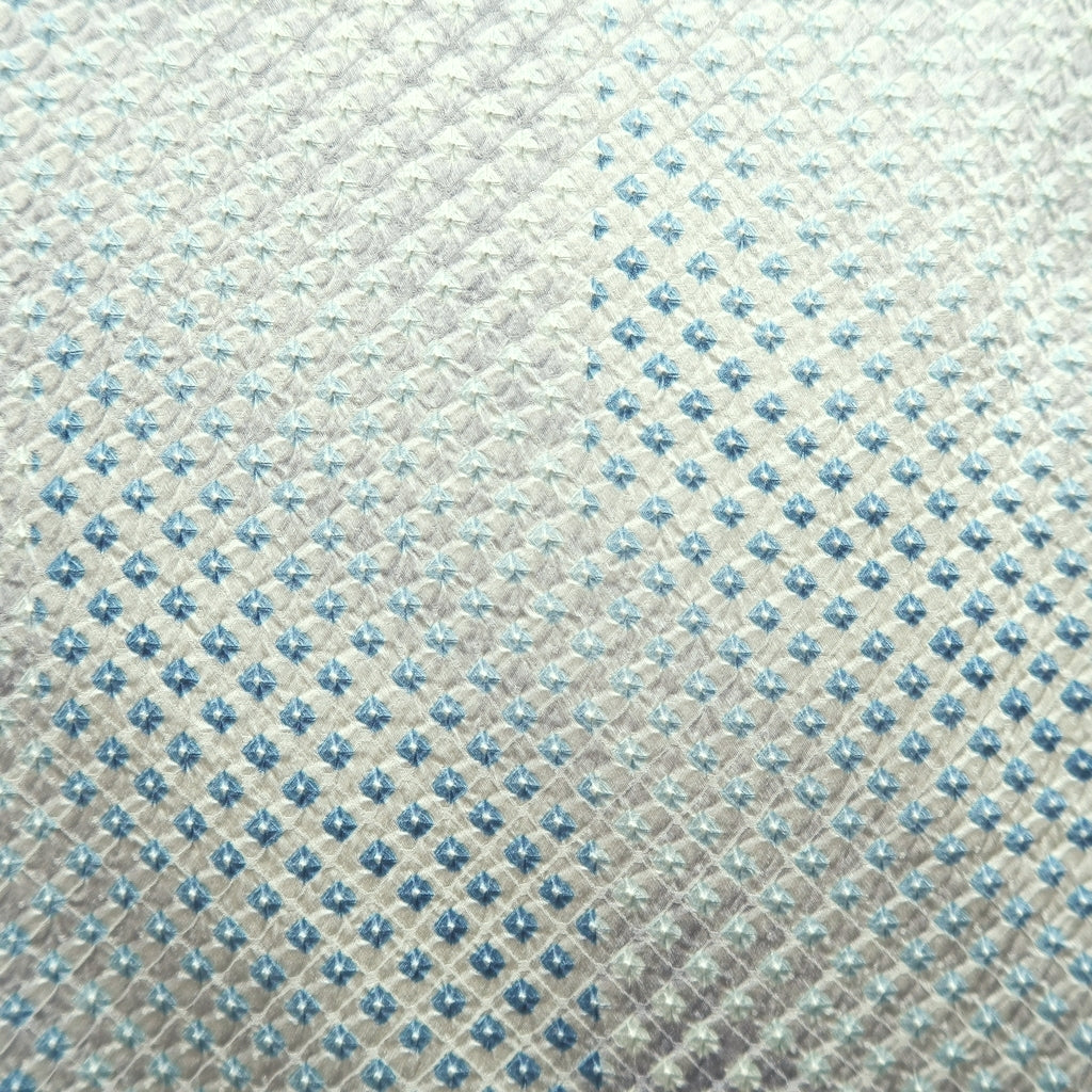 This garment is with hand-stitched shibori patterns in the traditional way. You will see slight variations in the small cells. This is not a flaw but proof that this garment is hand tie-dyed.