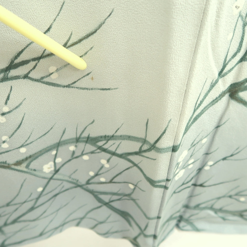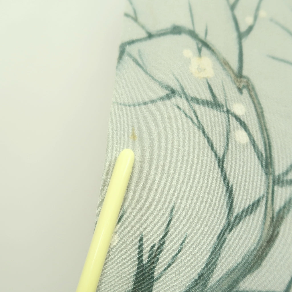 Kimono Light Gray Plum blossom Branch Silk #10535B3