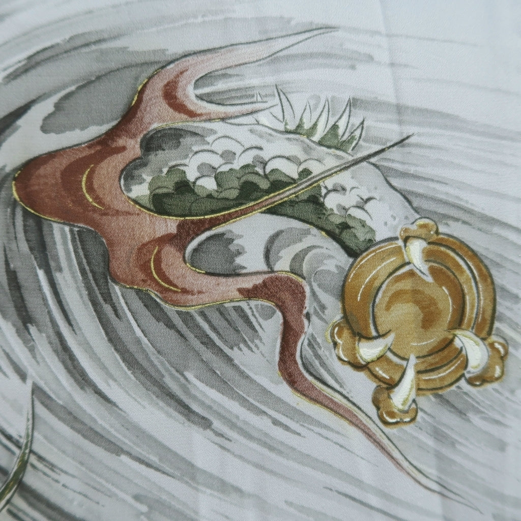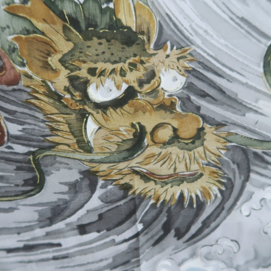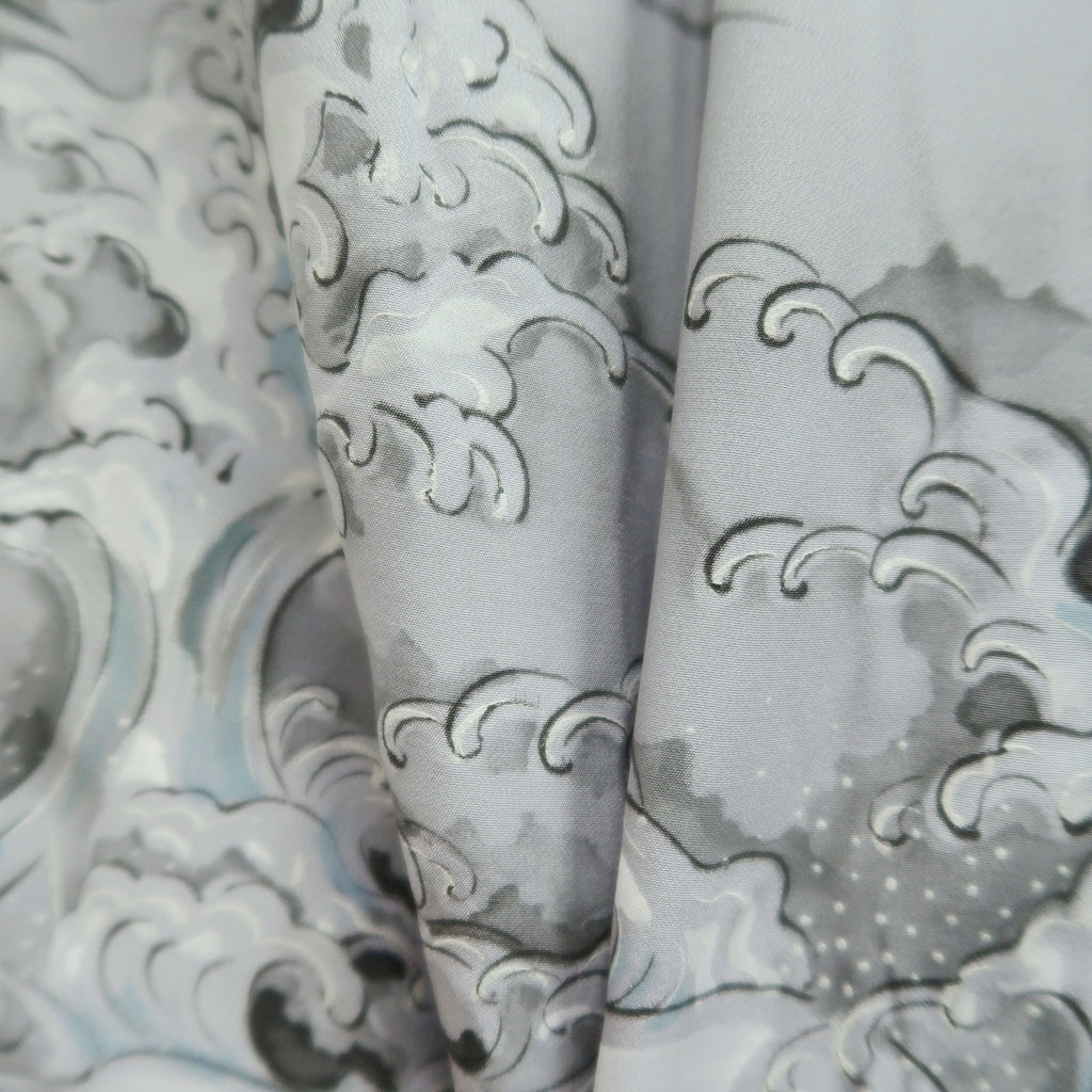 Men's Juban Grayish Blue Dragon Wave Silk #10298E5