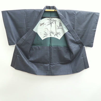 Men's Haori Vintage(1950-1980) Blue Black Bamboo Sparrow Silk #9385G1