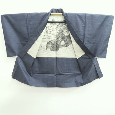 Men's Haori Vintage(1950-1980) Blue Black Ohshima Pine Tree Silk #9425G2