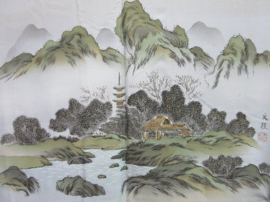 Men's Haori Vintage(1950-1980) Black Landscape Montsuki Habutae Silk #9136D4