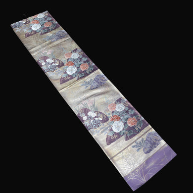 BB10059AD Silk Obi Fabric Cherry Blossom Gold Light Purple 51.6x11.0in(131x28cm)