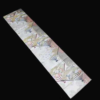 BB10066AE Silk Obi Fabric Maple Leaf Cherry Blossom White Gold 55.5x11.0in(141x28cm)