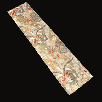 BB10085AF Silk Obi Fabric Phoenix Gold Beige 50.0x10.6in(127x27cm)