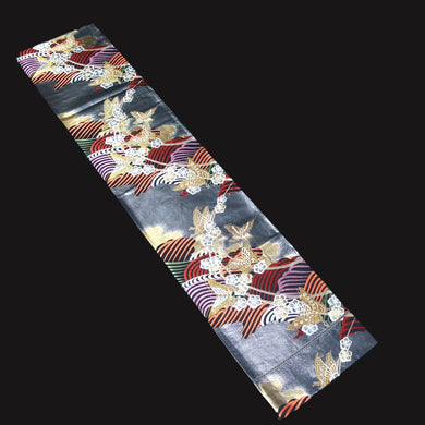 BB10072AF Silk Obi Fabric Phoenix Black Gold 48.4x10.2in(123x26cm)
