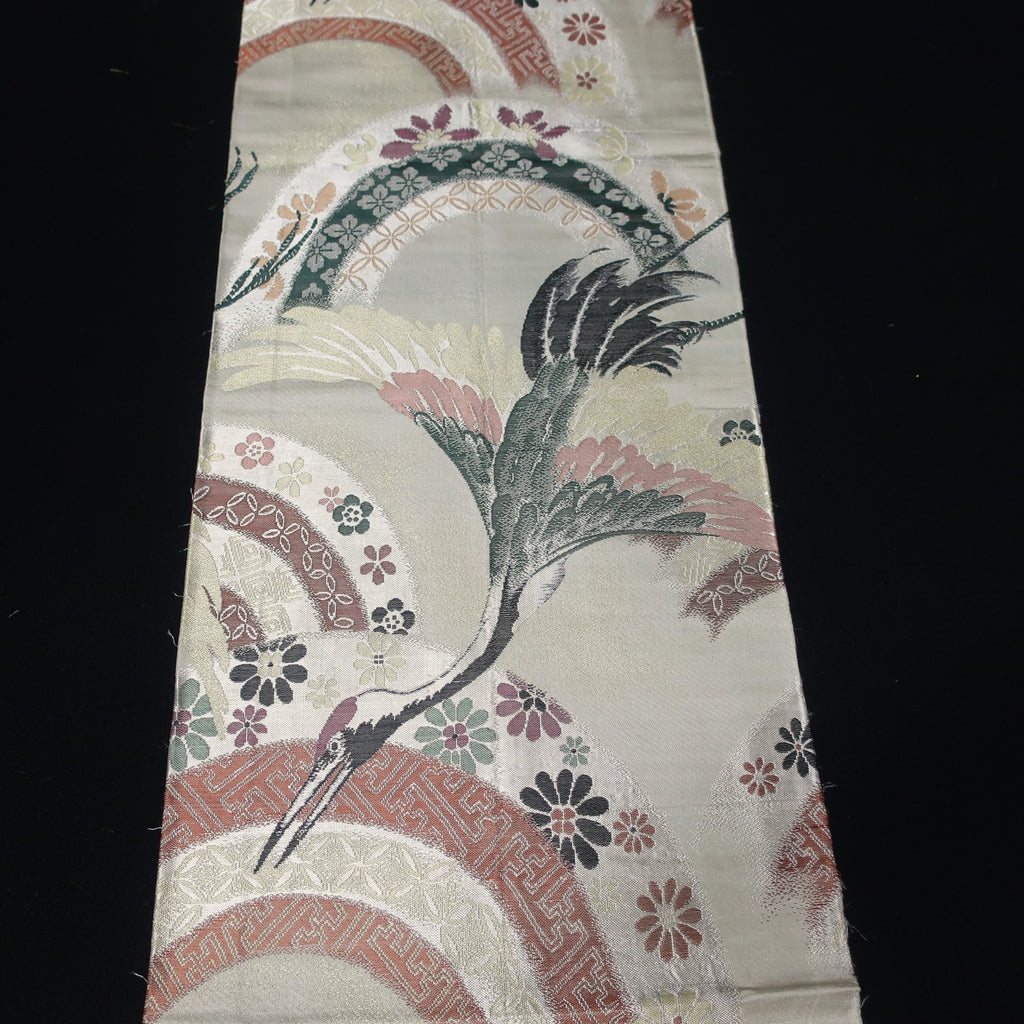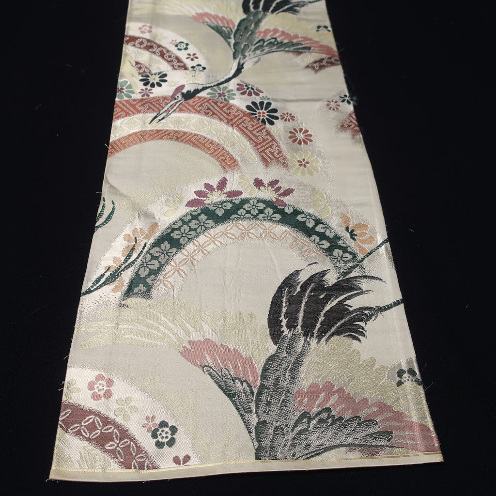 BB10042AD Silk Obi Fabric Crane Birds Gold Black 76.8x11.0in(195x28cm)
