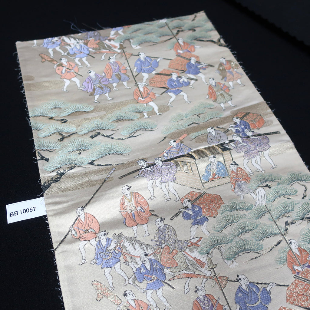 • Load image into Gallery viewer, BB10057AD Silk Obi Fabric Samurai Green Beige 51.6x10.6in(131x27cm)