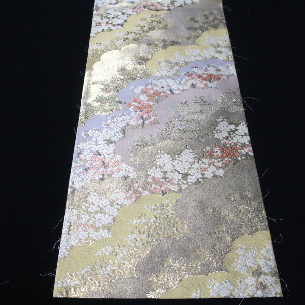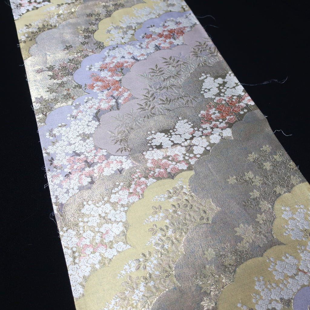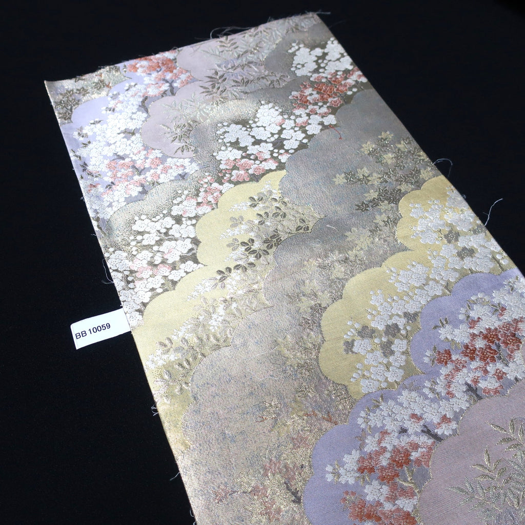 BB10059AD Silk Obi Fabric Cherry Blossom Gold Light Purple 51.6x11.0in(131x28cm)