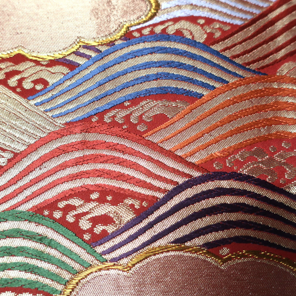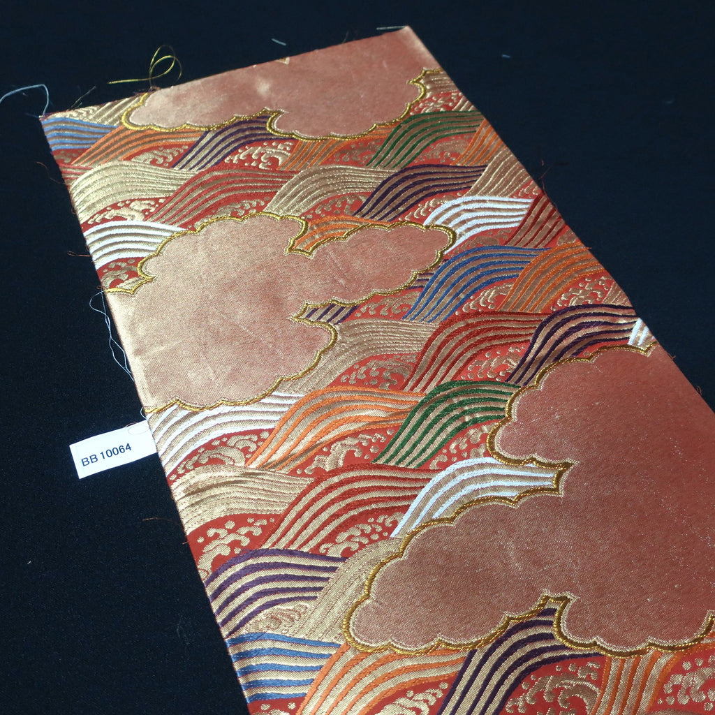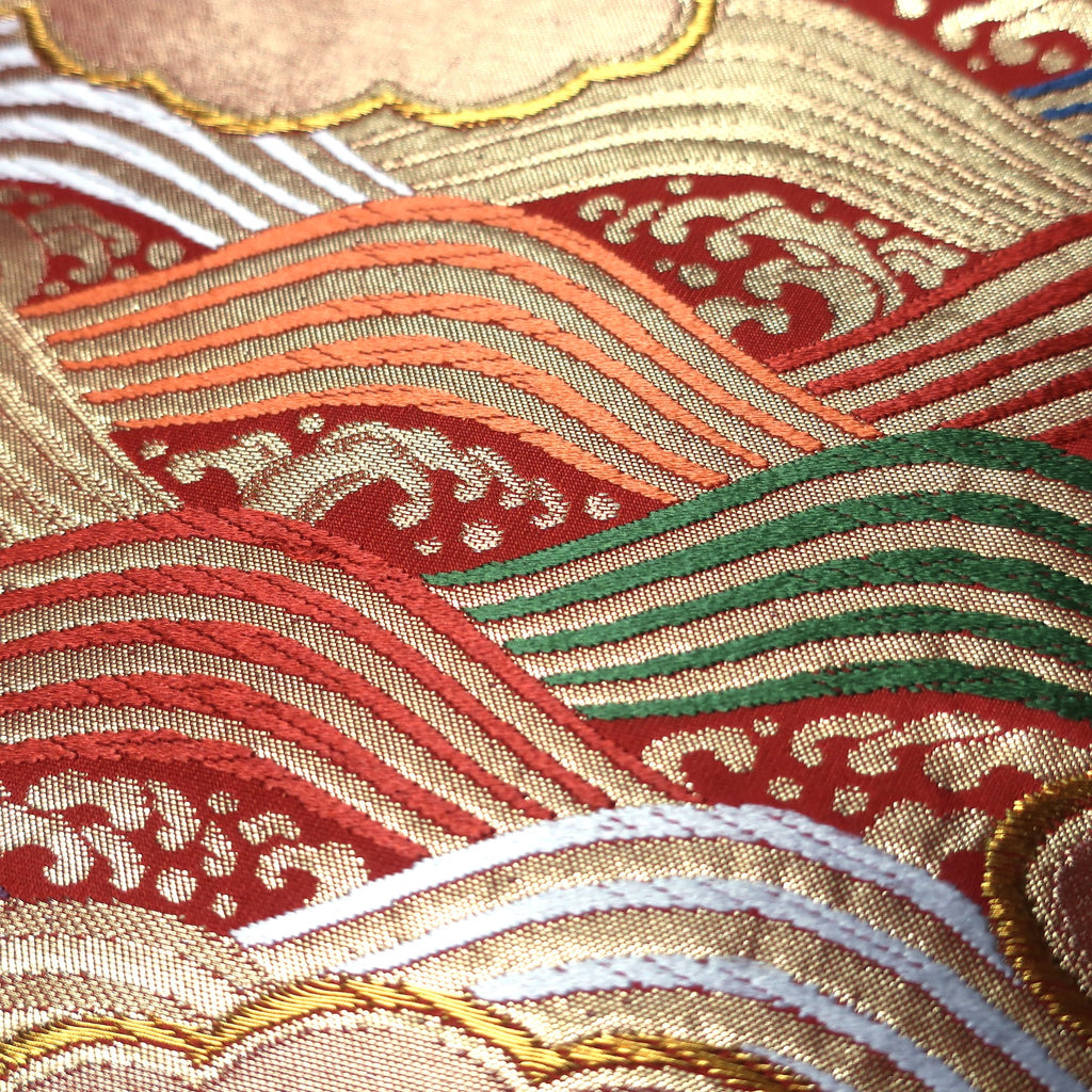 BB10064AE Silk Obi Fabric Curling Wave Vermillion 50.0x10.6in(127x27cm)