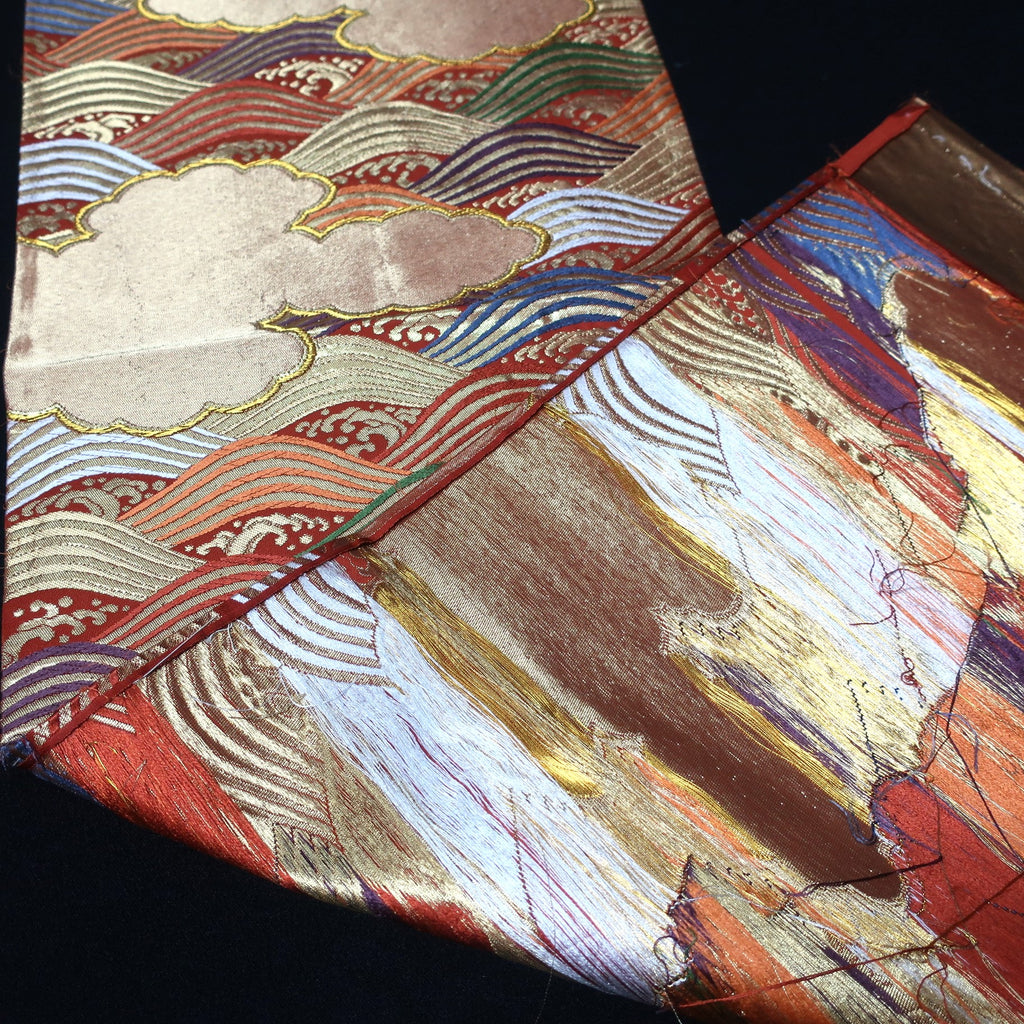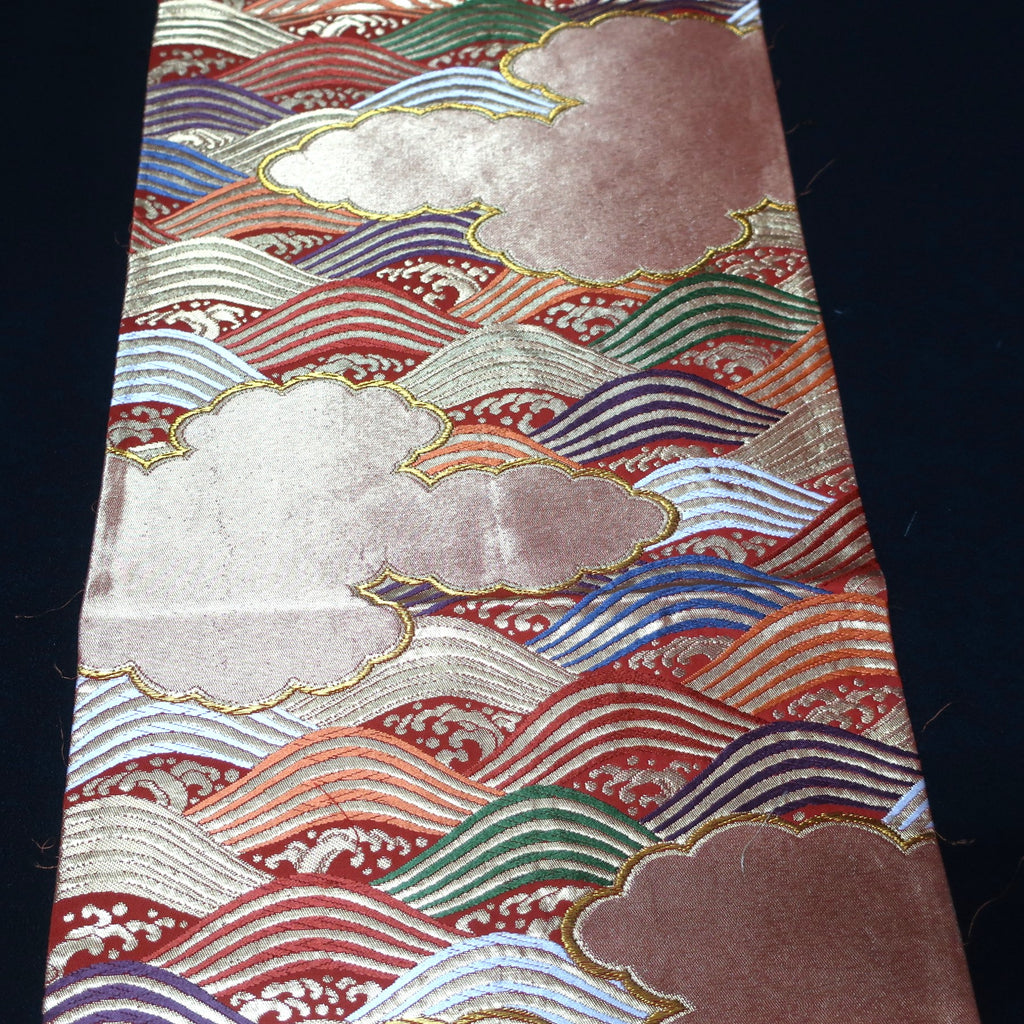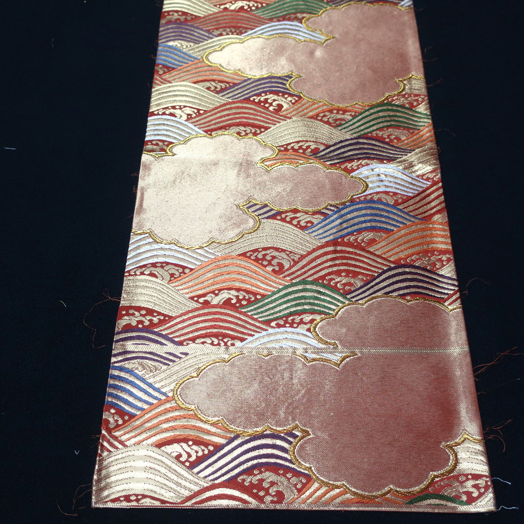 • Load image into Gallery viewer, BB10064AE Silk Obi Fabric Curling Wave Vermillion 50.0x10.6in(127x27cm)