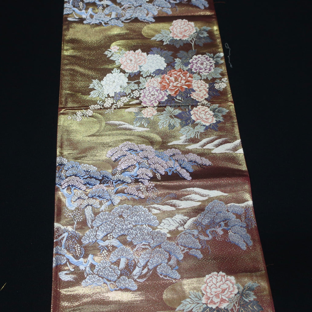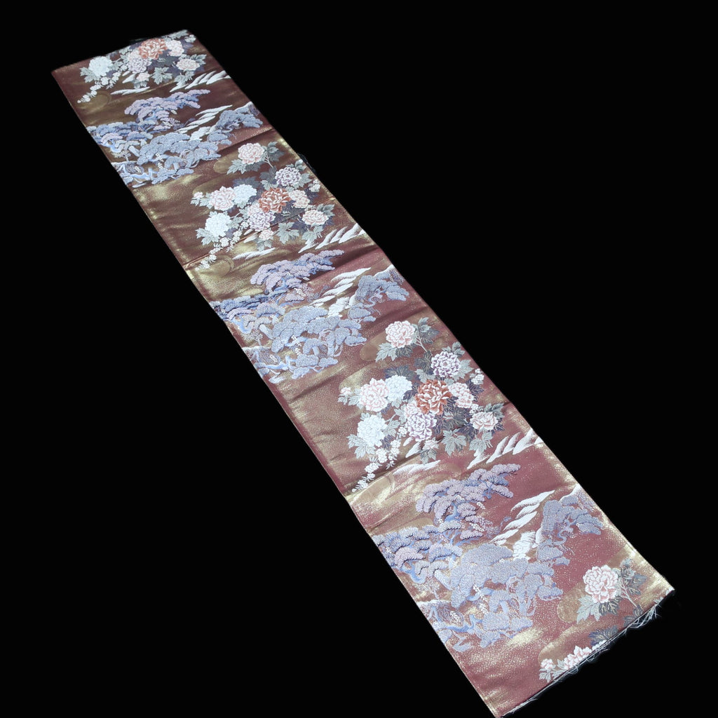 BB10067AE Silk Obi Fabric Peony Brown 54.7x10.6in(139x27cm)