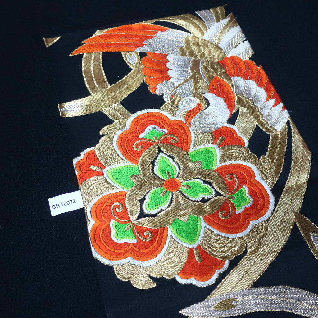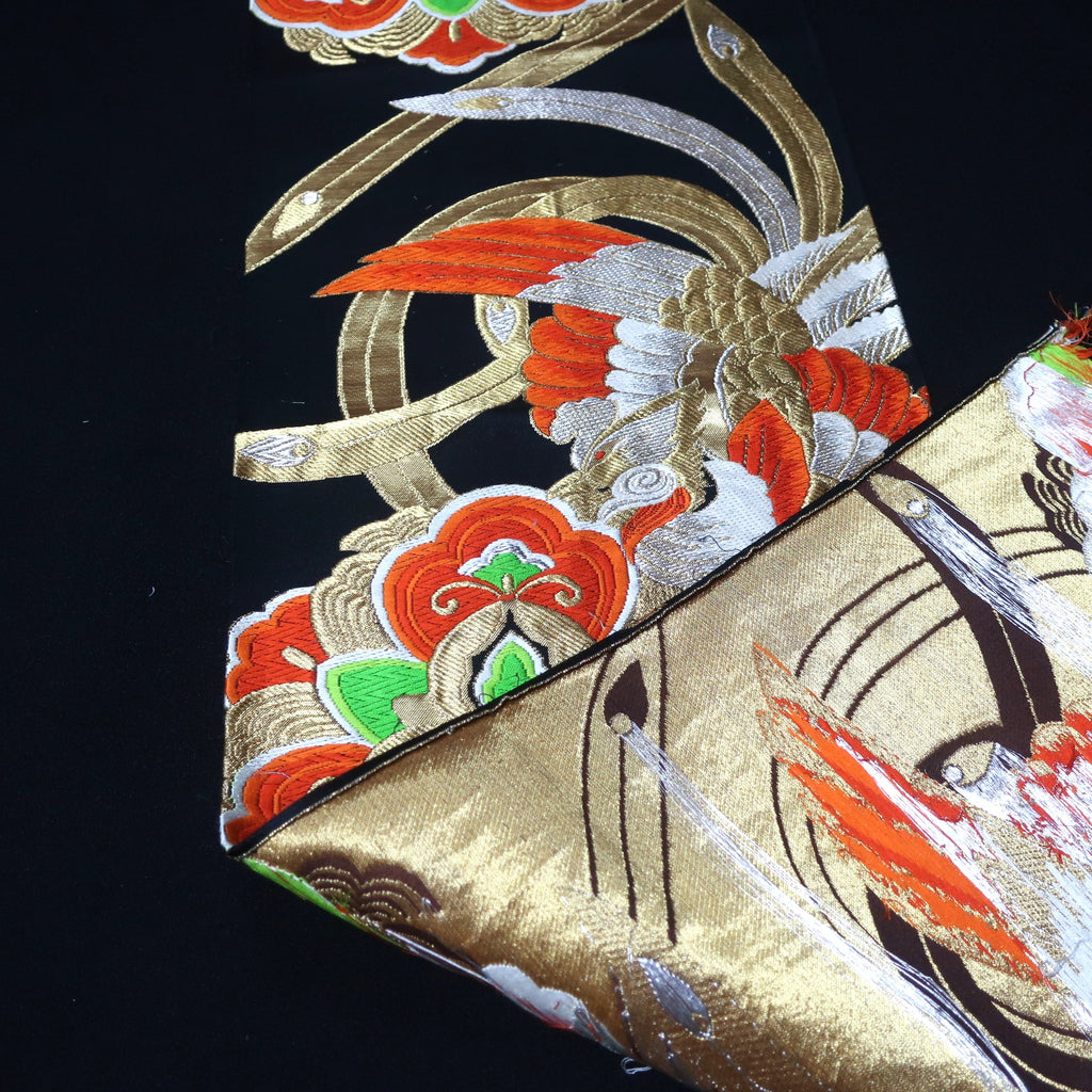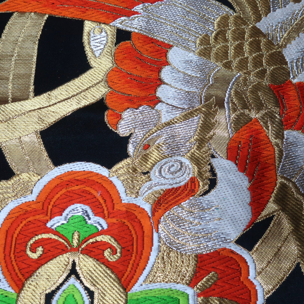 BB10072AF Silk Obi Fabric Phoenix Black Gold 48.4x10.2in(123x26cm)