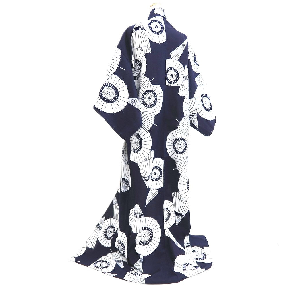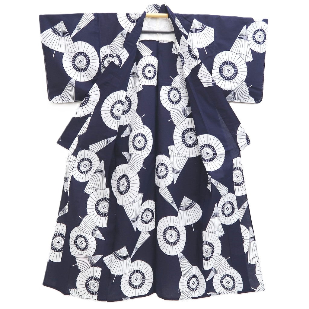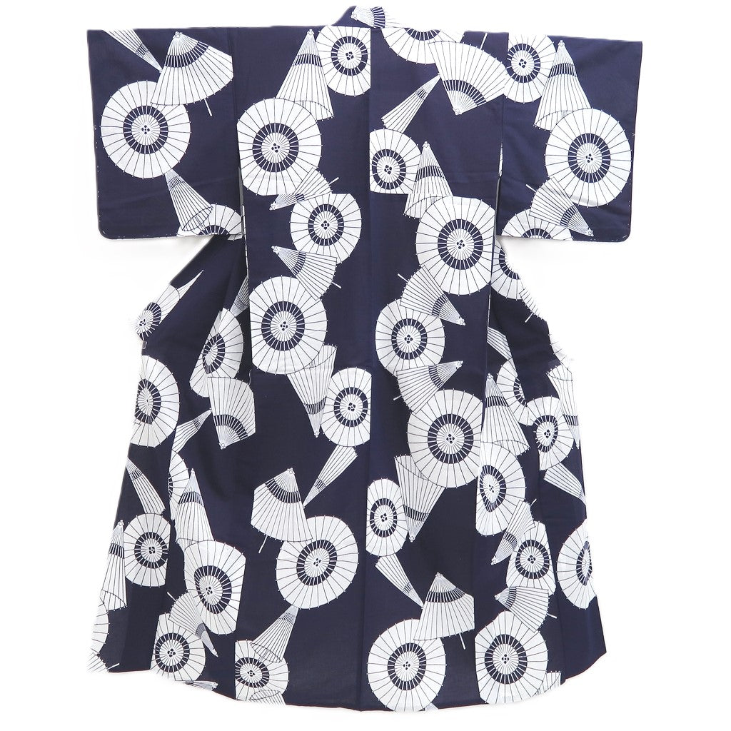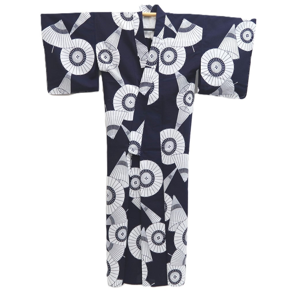 This vintage yukata features the elegant Bangasa Umbrella pattern, crafted from soft cotton for comfortable daily wear. Its traditional Japanese design not only provides breathable comfort but also serves as a striking piece of wall art, blending cultural beauty with versatile use. Ideal for those who value both functionality and aesthetic appeal.